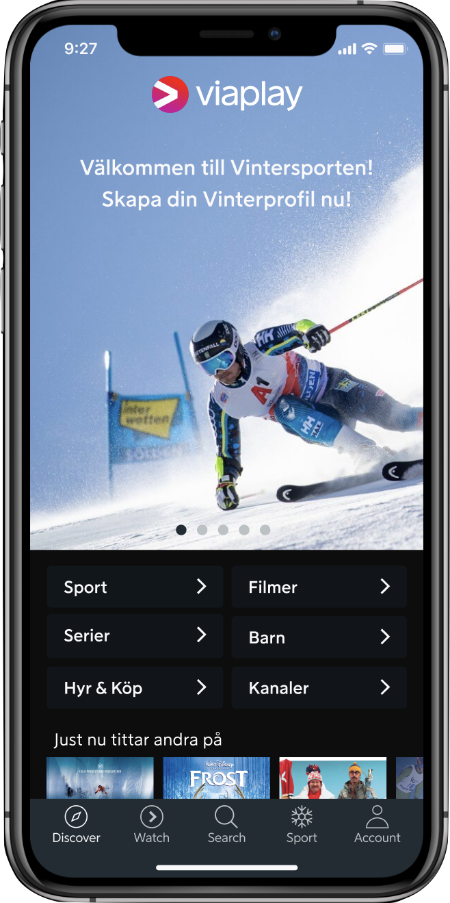 På NENT Groups tv-kanaler og Viaplay kan du se alt lige fra live-sport i verdensklasse Robinson Ekspeditionen anmelderroste internationale serier Viaplay Originals og Oscarvindende storfilm. Med Viaplay kan du streama ett urval av dina tv-kanaler live var och när du vill inom EU. Vi har en stærk samling af underholdnings- sports- og filmkanaler samt Nordens førende streamingservice.